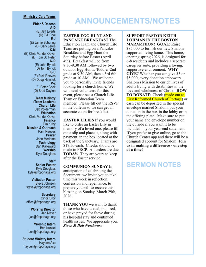 Bulletin for March 22, 2026