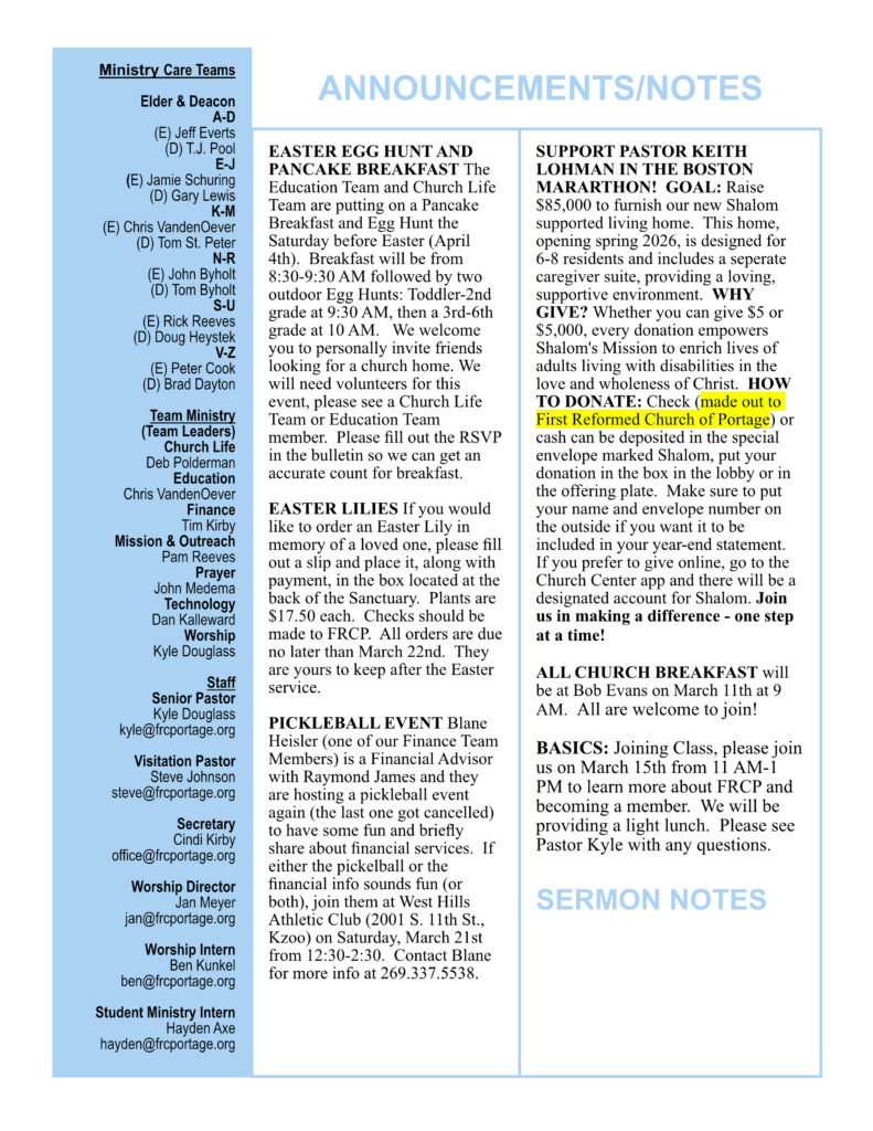 Bulletin for March 8, 2026
