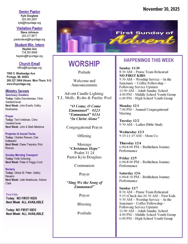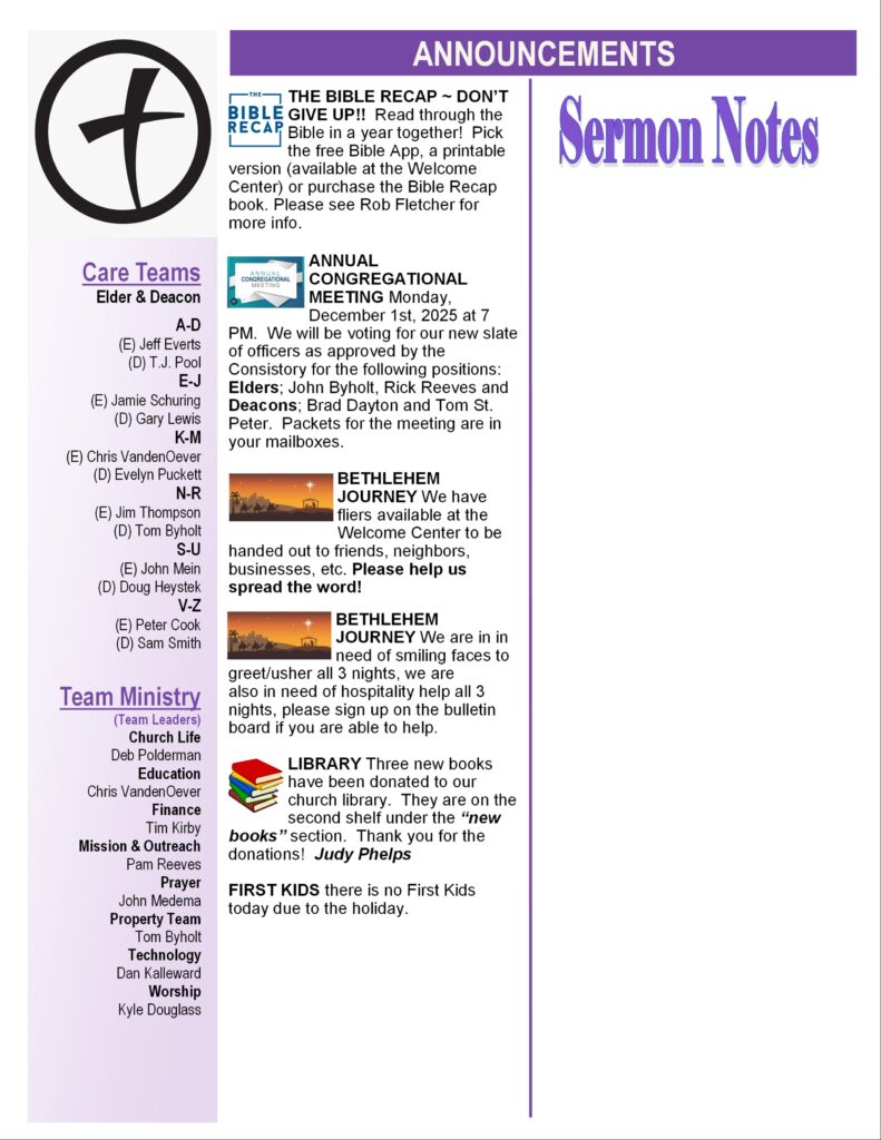 Bulletin for November 30, 2025